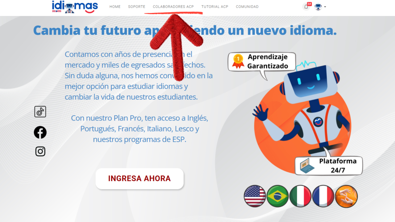 Paso 3: En el encabezado, haz clic en "COLABORADORES ACP".