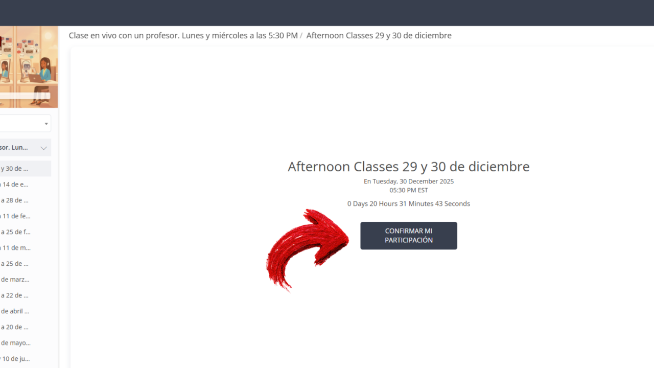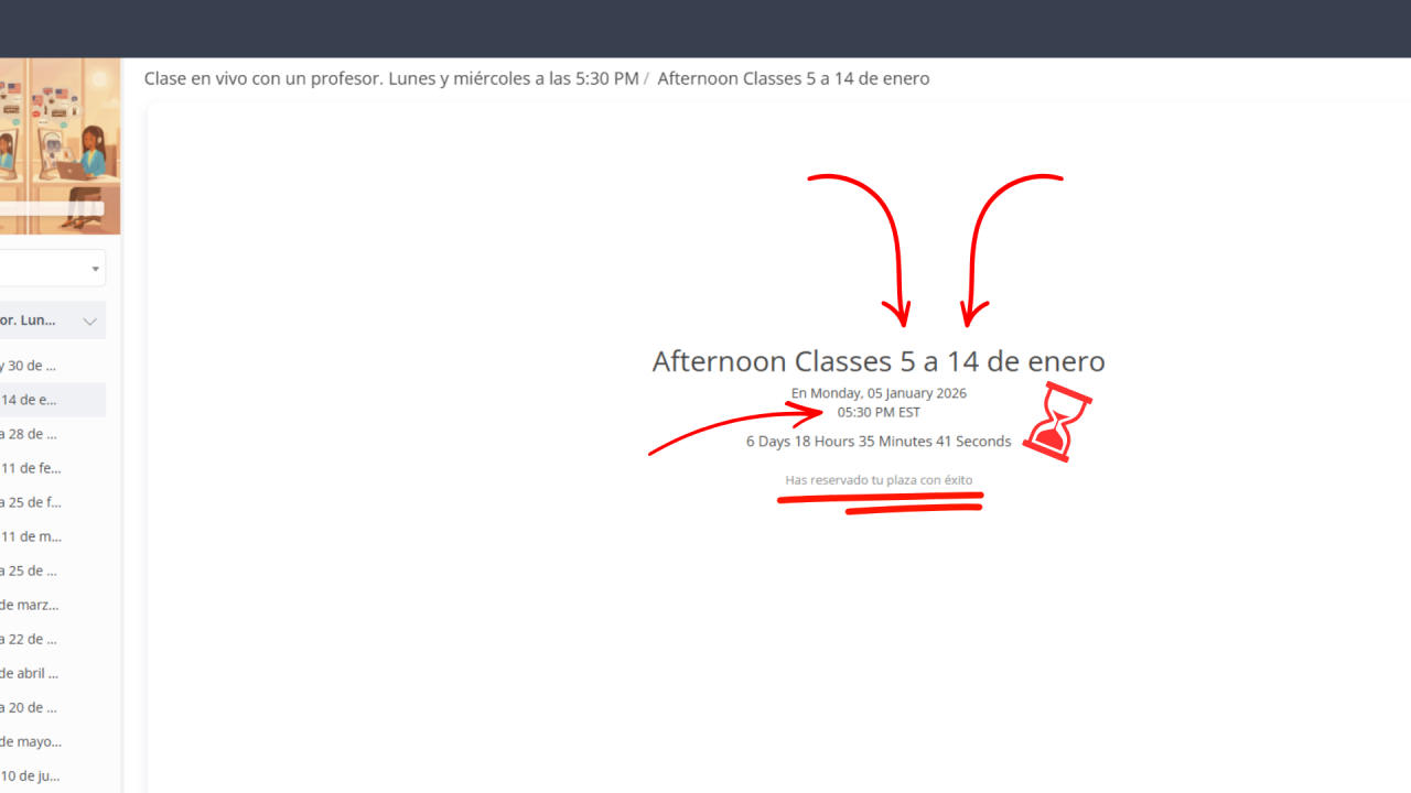 Para unirse a la clase basta seguir estes mismos pasos y unirse a la clase cuando esta empezar.